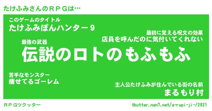 | ファンタジー風あだ名 | 『タケフェル』『エターナルタケフミー』 |