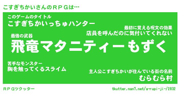 | 男性向けラノベタイトル風あだ名 | 『コスギチカイアートオンライン』 |