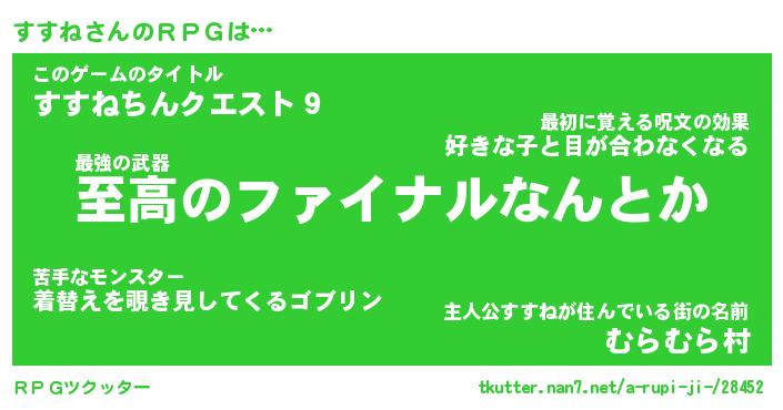 | ファンタジー風あだ名 | 『ススフェル』『エターナルススネー』 |