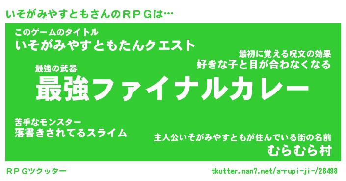 | 男性向けラノベタイトル風あだ名 | 『イソガミヤストモアートオンライン』 |