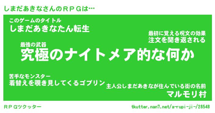 | 男性向けラノベタイトル風あだ名 | 『シマダアキナアートオンライン』 |
