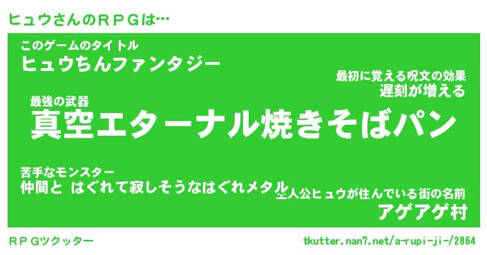 | 男性向けラノベタイトル風あだ名 | 『ヒュウアートオンライン』 |
