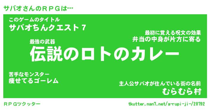 | 男性向けラノベタイトル風あだ名 | 『サバオの憂鬱』 |