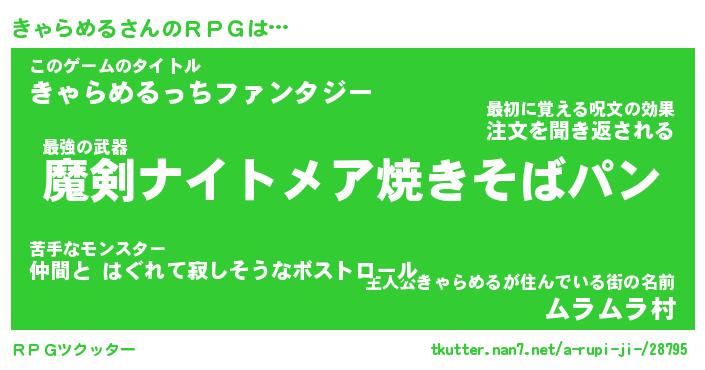 | ヒーロー風カッコイイあだ名 | 『スーパーキャラメル』『幻影騎士キャ』 |
