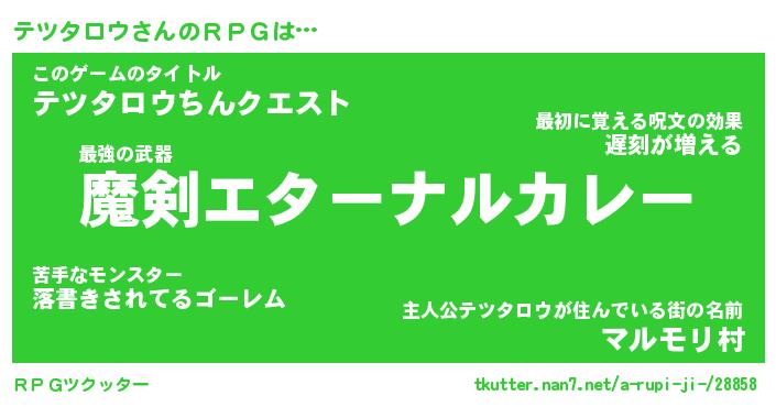 | 男性向けラノベタイトル風あだ名 | 『テツタロウの憂鬱』 |