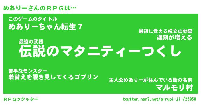 | 男性向けラノベタイトル風あだ名 | 『めありーの憂鬱』 |