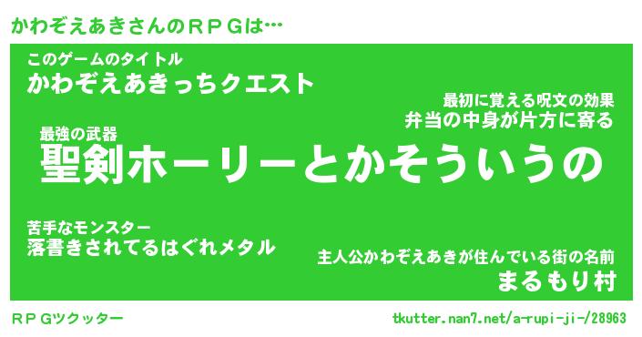 | 女子向けラノベタイトル風あだ名 | 『(仮)かわぞえあきのやんごとなき事情』 |