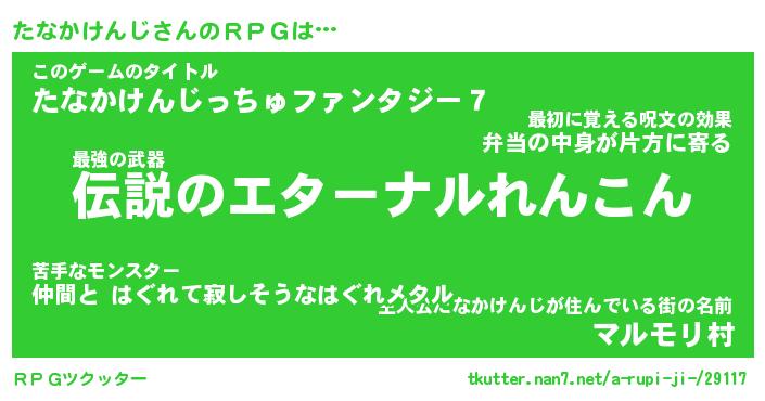 | 男性向けラノベタイトル風あだ名 | 『たなかけんじの憂鬱』 |