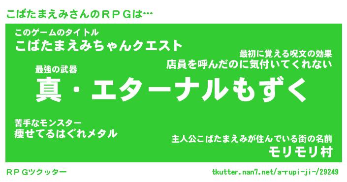 | 男性向けラノベタイトル風あだ名 | 『コバタマエミアートオンライン』 |