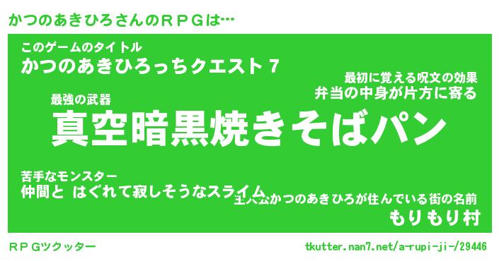 | 伝説のあだ名 | 『封印されし傭兵かつのあきひろ』 |