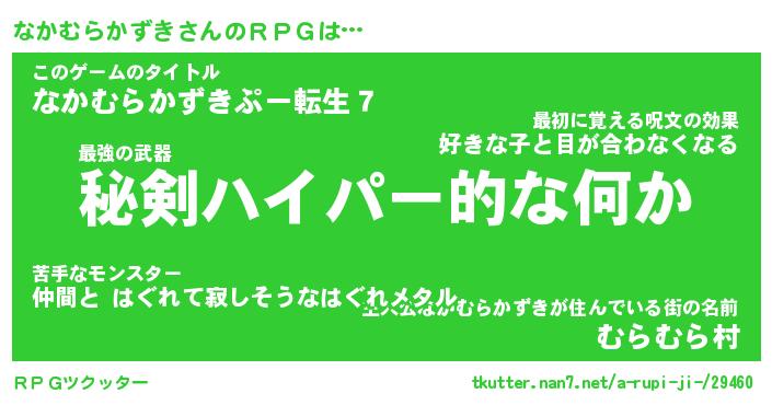 | 男性向けラノベタイトル風あだ名 | 『なかむらかずきの憂鬱』 |