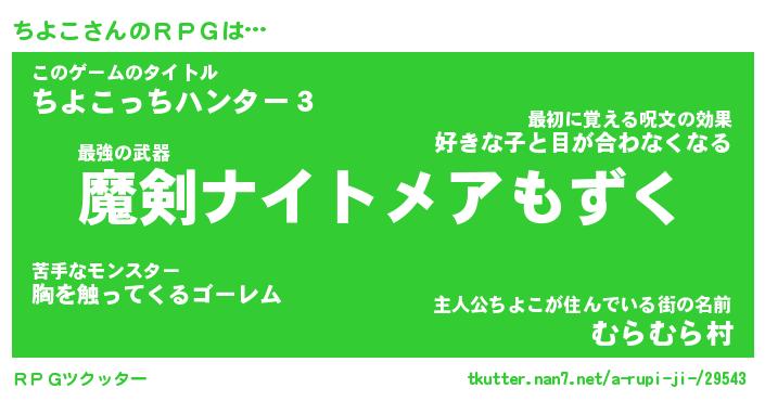 | 伝説のあだ名 | 『伝説のスナイパーちよこ』 |