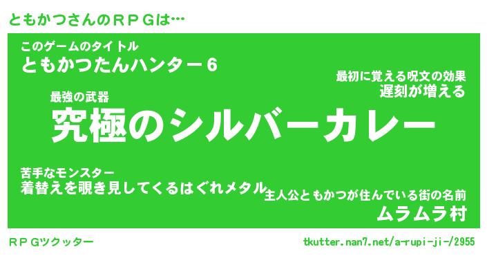 | 男性向けラノベタイトル風あだ名 | 『ともかつの憂鬱』 |