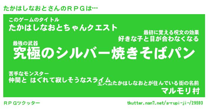 | 男性向けラノベタイトル風あだ名 | 『タカハシナオトアートオンライン』 |