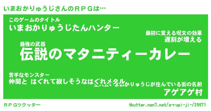 | 肩書あだ名 | 『いまおかりゅうじ御曹司』 |
