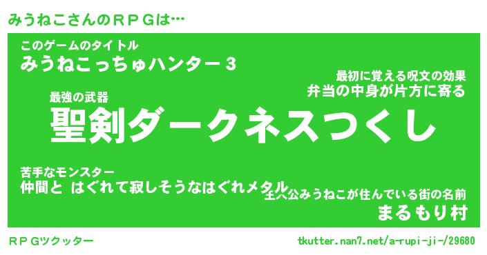 | ヒーロー風カッコイイあだ名 | 『スーパーミウネコ』『幻影騎士ミウ』 |