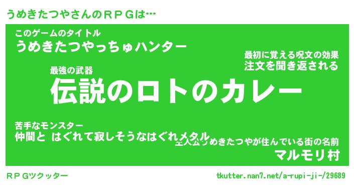 | 男性向けラノベタイトル風あだ名 | 『うめきたつやの憂鬱』 |