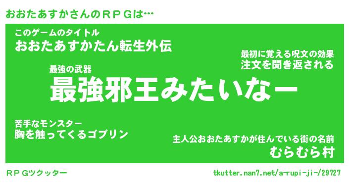 | 男性向けラノベタイトル風あだ名 | 『オオタアスカアートオンライン』 |