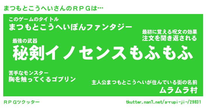| 男性向けラノベタイトル風あだ名 | 『まつもとこうへいの憂鬱』 |