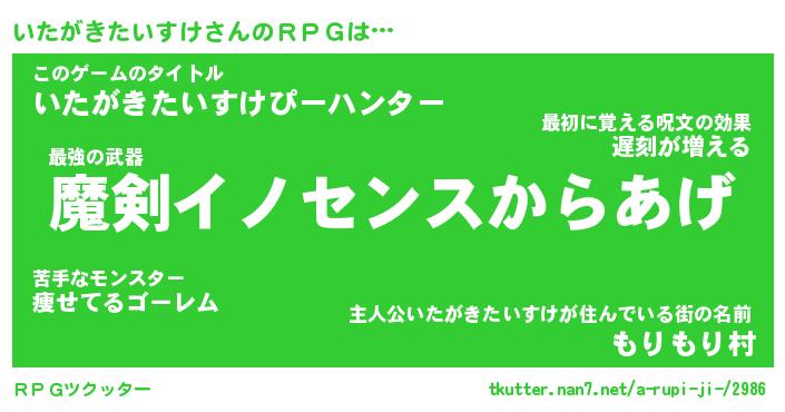 | 男性向けラノベタイトル風あだ名 | 『いたがきたいすけの憂鬱』 |