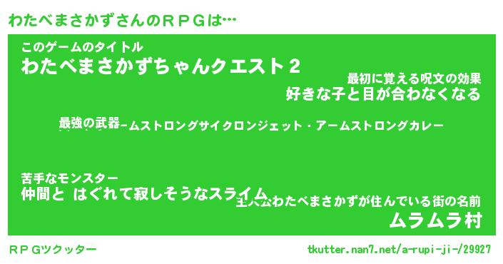 | 男性向けラノベタイトル風あだ名 | 『ワタベマサカズアートオンライン』 |