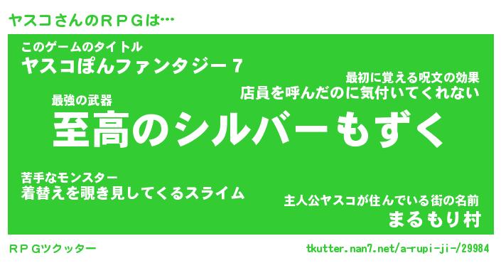 | 男性向けラノベタイトル風あだ名 | 『ヤスコアートオンライン』 |