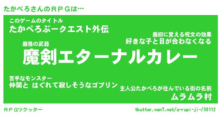 | 男性向けラノベタイトル風あだ名 | 『たかぺろの憂鬱』 |
