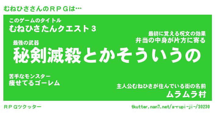 | 胡散臭い通販商品みたいなあだ名 | 『必ず成功する霊験あらたかなお札…その名も「むねひさ」』 |