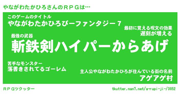 | 伝説のあだ名 | 『伝説の竜騎士やながわたかひろ』 |