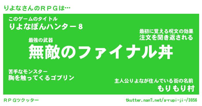 | ファンタジー風あだ名 | 『リヨフェル』『エターナルリヨナー』 |