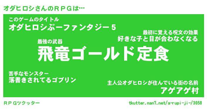 | ファンタジー風あだ名 | 『オダフェル』『エターナルオダヒロシー』 |