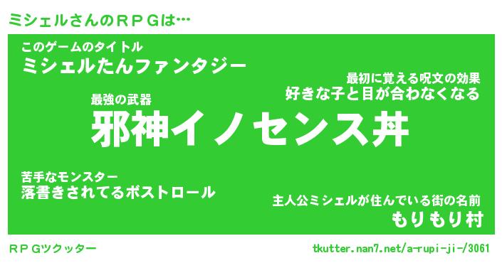 | ファンタジー風あだ名 | 『ミシフェル』『エターナルミシェルー』 |