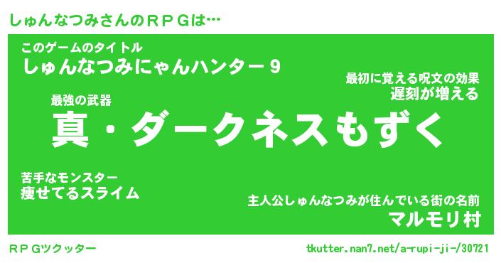 | 男性向けラノベタイトル風あだ名 | 『シュンナツミアートオンライン』 |