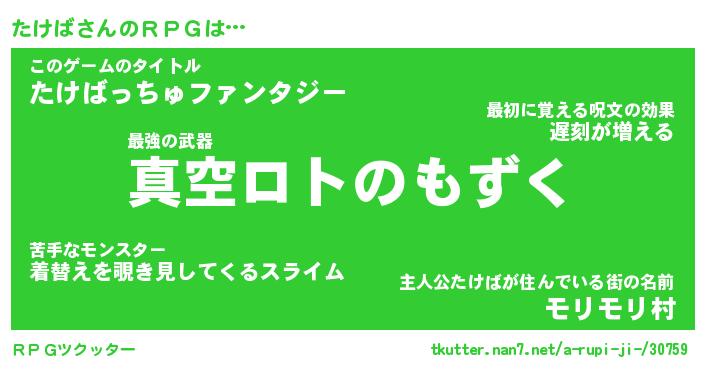 | ファンタジー風あだ名 | 『タケフェル』『エターナルタケバー』 |