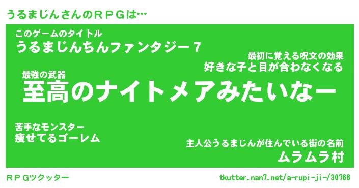 | 胡散臭い通販商品みたいなあだ名 | 『モテモテ間違いなし霊験あらたかなお札…その名も「うるまじん」』 |