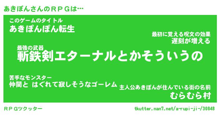 | 伝説のあだ名 | 『伝説の傭兵あきぽん』 |