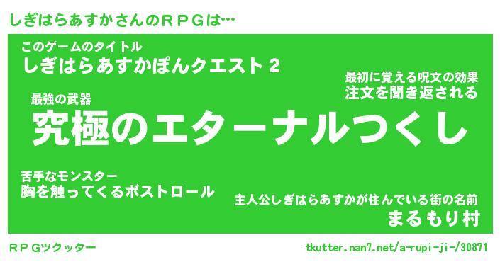 | ヘコむあだ名 | 『しぎにゅー』『つくし』『しぎっ子』 |