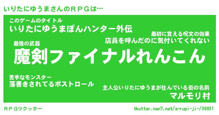 | 男性向けラノベタイトル風あだ名 | 『いりたにゆうまの憂鬱』 |