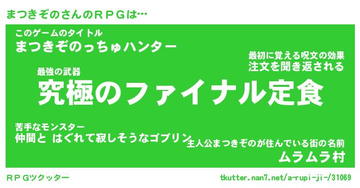 | ファンタジー風あだ名 | 『マツフェル』『エターナルマツキゾノー』 |