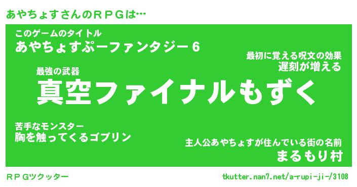 | 伝説のあだ名 | 『封印されし竜騎士あやちょす』 |