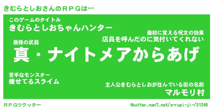 | 男性向けラノベタイトル風あだ名 | 『キムラトシオアートオンライン』 |