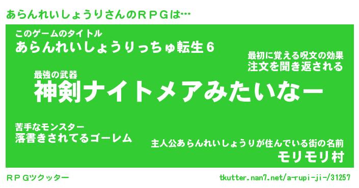 | 男性向けラノベタイトル風あだ名 | 『あらんれいしょうりの憂鬱』 |