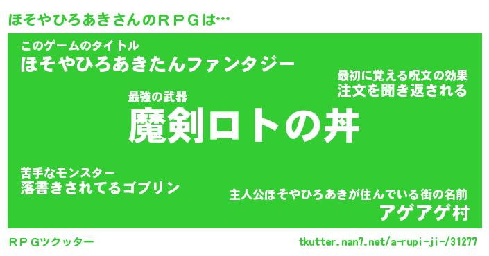 | 胡散臭い通販商品みたいなあだ名 | 『必ず成功するブレスレット…その名も「ほそやひろあき」』 |