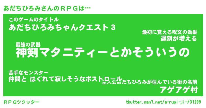 | 胡散臭い通販商品みたいなあだ名 | 『モテモテ間違いなし霊験あらたかなお札…その名も「あだちひろみ」』 |