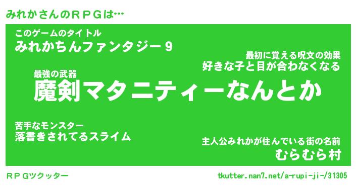 | 胡散臭い通販商品みたいなあだ名 | 『必ず成功する霊験あらたかなお札…その名も「みれか」』 |