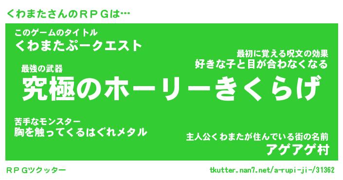 | ファンタジー風あだ名 | 『クワフェル』『エターナルクワマター』 |