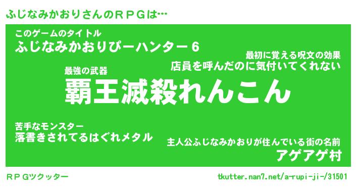 | 男性向けラノベタイトル風あだ名 | 『フジナミカオリアートオンライン』 |