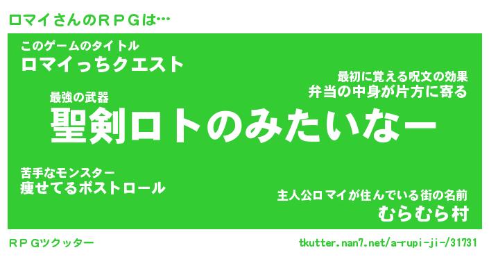 | 男性向けラノベタイトル風あだ名 | 『ロマイの憂鬱』 |