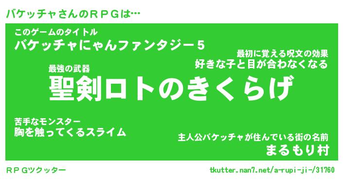 | ファンタジー風あだ名 | 『バケフェル』『エターナルバケッチャー』 |