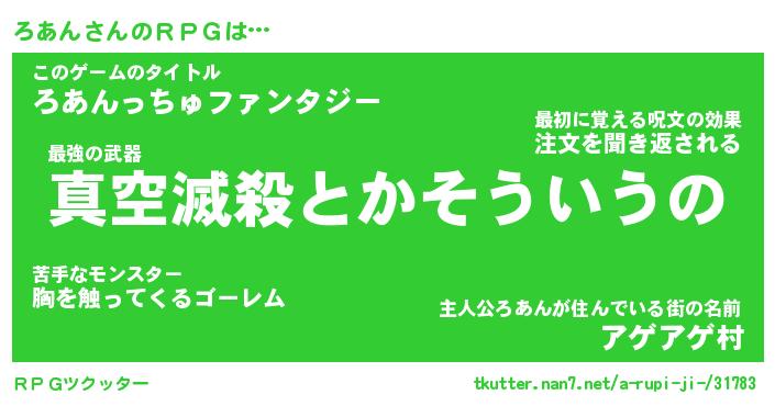 | ファンタジー風あだ名 | 『ロアフェル』『エターナルロアンー』 |